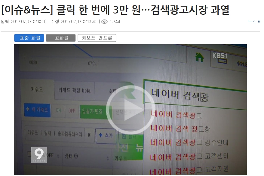 KBS는 지난 4일과 7일 뉴스에서 과열된 검색광고시장으로 인해 소상공인의 부담이 크다고 비판했다. 두 기사는 펜션과 컴퓨터 수리업체라는 사례만을 바꿔 비슷한 내용으로 보도했다.