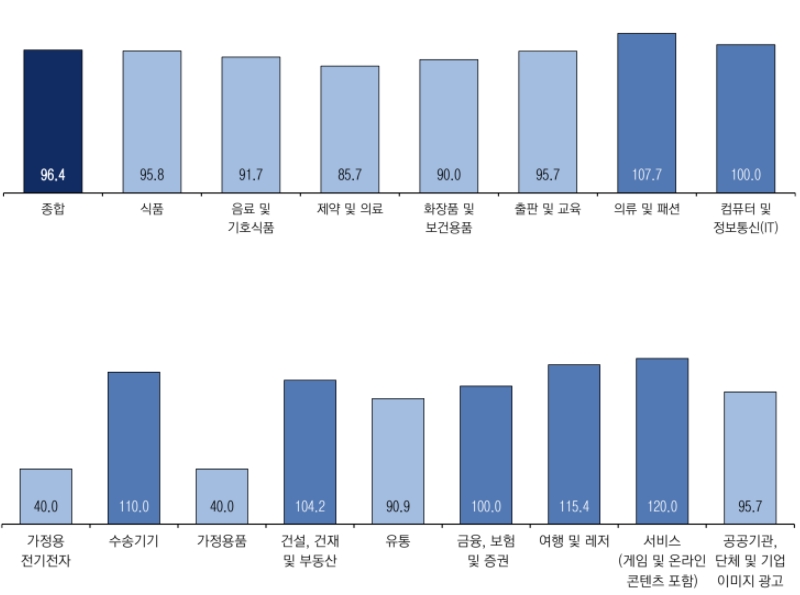 해당 업종의 광고주 중 광고비 지출이 늘어날 것이라고 응답한 숫자가 많으면 100이 넘고, 그 반대면 100 미만이 된다.