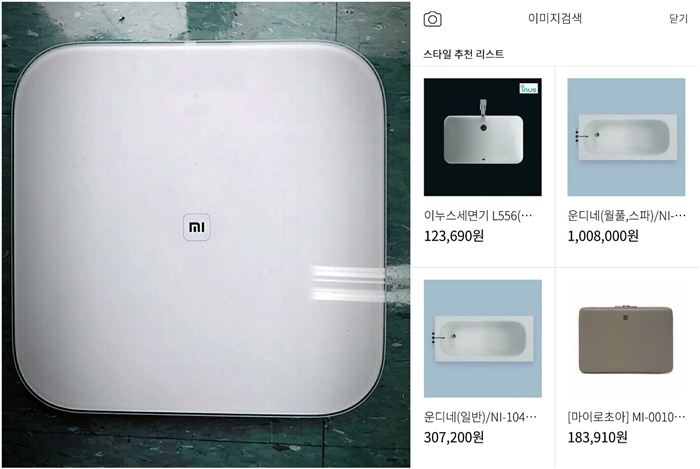조금 큰 사물을 이용해 봤습니다. 사무실에서 직원들의 건강을 책임져주는 ‘샤오미 체중계’를... 아.. 세면대가 나오는군요.