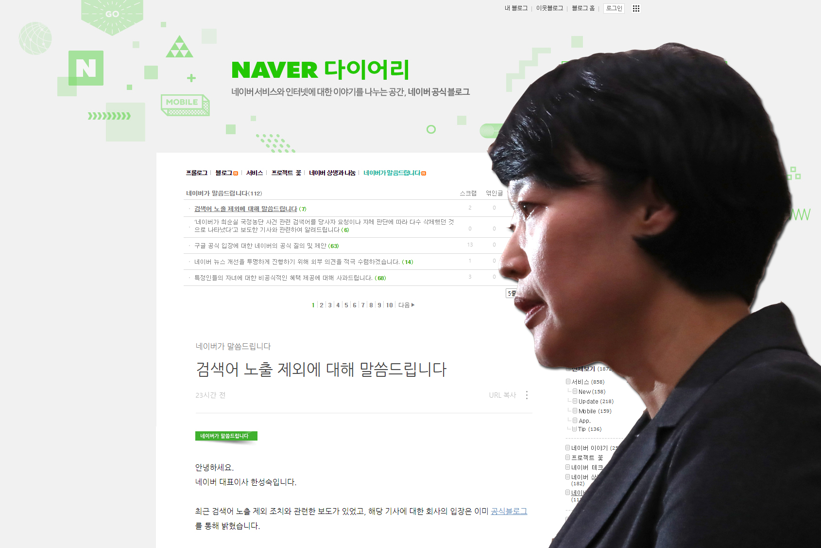 이번에도 한 대표는 자사 블로그 ‘네이버 다이어리’를 통해 입을 열었다. 해당 글에서 그는 “검색어 삭제 판단은 우리에게도 어려운 문제”라며 속내를 내비치기도 했다.