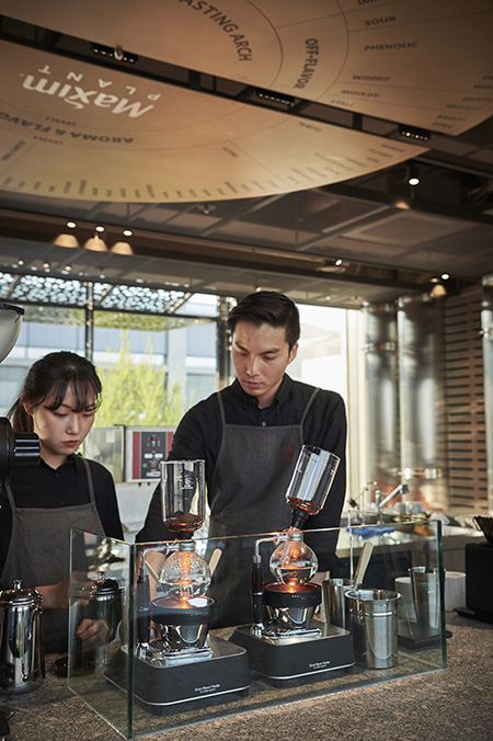 동서식품 역시 맥심 플랜트를 단순한 커피숍이 아닌 오감 연결 공간으로 만들고자 했다. 맥심 플랜트에 가면 ‘공감각(synesthesia) 커피’라는 특별한 상품을 주문할 수 있다. 매장 한편에 준비된 스마트 패드를 이용해 본인의 취향을 묻는 몇 가지 질문들에 답하면, 이를 기반으로 24가지 다양한 블렌딩 커피 중 하나를 추천해준다. 24가지 커피는 50여년 동안 수십만 톤의 커피를 다뤄온 맥심의 원두 선별 노하우로 만들어진 스페셜티 제품들로, 맛(taste)이라는 측면에서 소비자에게 딱 맞는 커피를 제공한다.