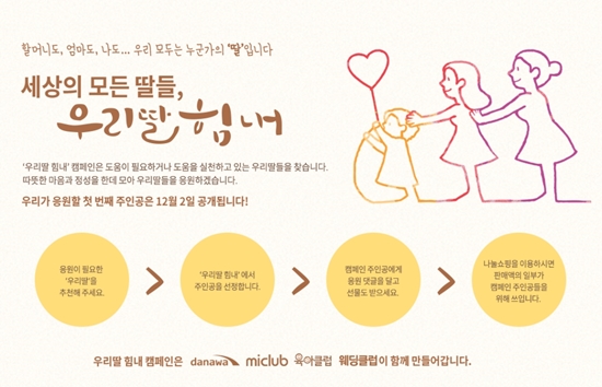 다나와는 최근 ‘우리딸 힘내’라는 이름의 캠페인을 시작했다. 해당 캠페인은 소녀가장 등 소외계층 여성과 여성 관련 사회적기업 등 사회 전반의 관심이 필요한 대상을 정기적으로 선정, 지원하는 성격을 띄고 있다.
