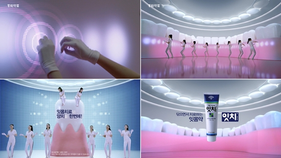 잇치의 치약성분(화이트 컬러)과 잇몸약 성분(브라운 컬러)을 상징하는 의상을 입은 ‘잇치걸’들이 100여개의 LED 패널을 활용해 잇몸을 형상화한 대형 세트에서 잇몸을 마사지하듯 선보이는 댄스도 이 노래와 묘한 조화를 이룬다.
