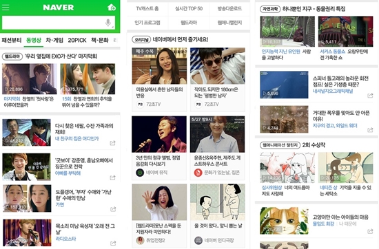 우선 네이버는 지난달 모바일 메인 동영상 판을 개편하면서 제휴를 맺은 단독 콘텐츠를 소개하는 ‘네이버 오리지널’과 다큐멘터리 등 이색 소재의 영상을 볼 수 있는 고정 영역을 신설했다.