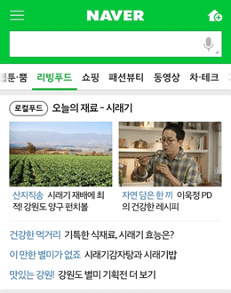 개별 식재료에 대한 레시피, 손질법, 생산자의 생생한 스토리 등이 담긴 다양한 콘텐츠는 네이버 모바일홈 ‘리빙푸드’ 판에 신설되는 ‘로컬 푸드’ 영역에서 확인할 수 있다.