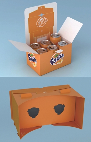 단순히 VR영상만 만든 것이 아니라 이를 쉽게 즐길 수 있도록 VR뷰어를 제공하는 이벤트도 전개했다. ‘환타 VR 뷰어팩’이 그것이다. 패키지의 겉포장지는 마치 ‘구글 카드보드’처럼 VR뷰어로 조립할 수 있다. 영상은 제품 내 QR코드를 스캔해 감상할 수 있도록 했다.