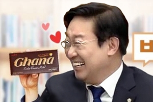 롯데제과가 자사 페이스북을 통해 가나초콜릿의 새로운 광고모델을 맞추는 이벤트를 시작했다. 그런데 난데없이 박범계 더불어민주당 의원이 유력한 후보(?)로 거론돼 재미를 주고 있다.