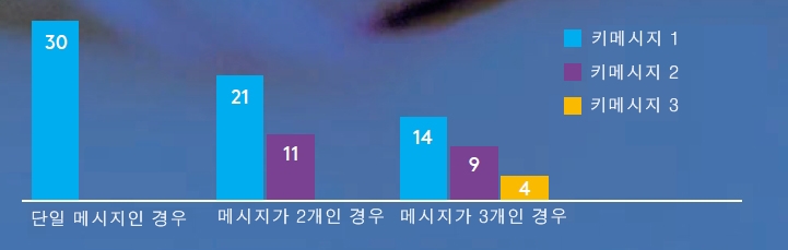 2. 두뇌 활동을 이해하라 : 사람들의 뇌 활동을 이해하라는 것은 전달하고자 하는 주요 메시지의 수를 제한하는 것을 의미한다. 1000개 이상의 광고를 분석한 결과, 단일 메시지만 포함한 경우에는 30%의 시청자가 주요 메시지를 상기했다. 반면, 캠페인이 세 개의 메시지를 전달한 경우에는 평균적으로 14%의 시청자만이 처음의 주요 메시지를 기억해냈다.