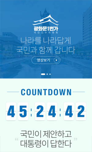 국민인수위원회 관계자는 “50일간 광화문 1번가를 운영하며 국민들로부터 정책제안을 접수받는다”면서 “이후 민원이나 제안 등은 (기존의) 국민신문고를 통해 이뤄질 것”이라고 말했다.