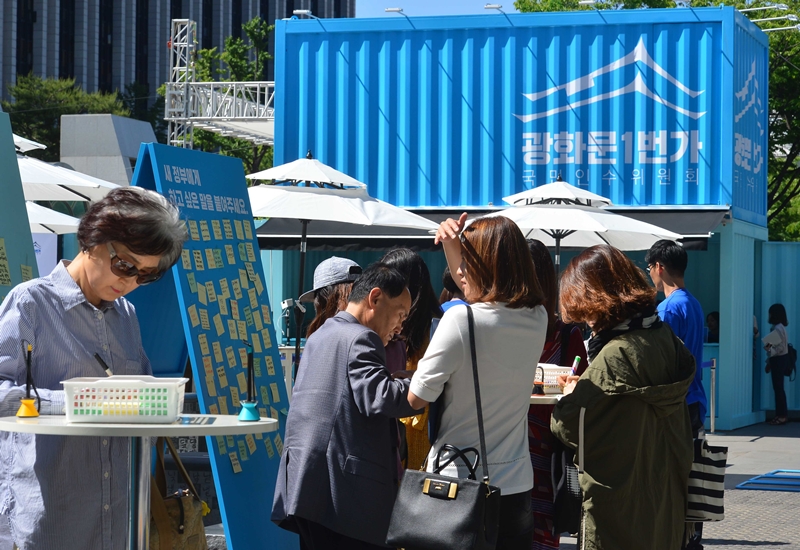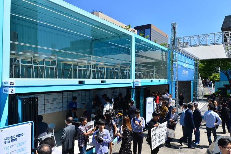 [더피알=안선혜 기자] 문재인 정부의 국민인수위원회 ‘광화문 1번가’가 25일 오후 서울 종로구 세종로공원에 문을 열었다.