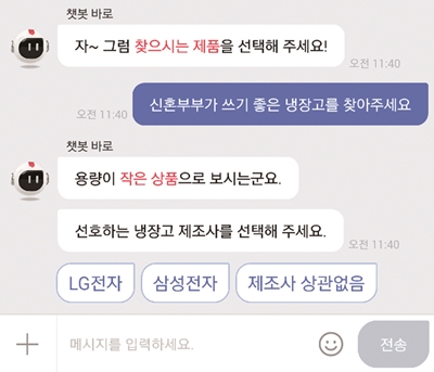 농협은행은 카카오톡 기반의 챗봇 서비스 ‘금융봇’을 출시했고, 우리은행은 음성 명령으로 계좌 조회, 송금, 공과금 납부가 가능한 ‘소리(SORi)’를 내놨다. 11번가 챗봇 ‘바로’는 딥러닝 기술을 활용해 고객의 말에 담긴 의도를 파악하고 맞춤 정보를 제공한다. “자취용 전기밥솥 찾아줘”라고 물어보면 “용량이 작은 상품으로 보시는군요”라고 대답하며 검색 대상을 좁히고 알맞은 제품을 추천한다.