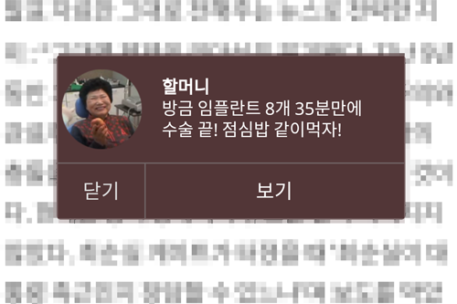 실제 이 광고는 카톡의 특성을 고스란히 차용했다. 모양도 흡사하지만 기사를 스크롤하며 읽어 내리는 중간에 갑자기 팝업창이 나타나 카톡 메시지라는 착각을 불러일으키게 한다.