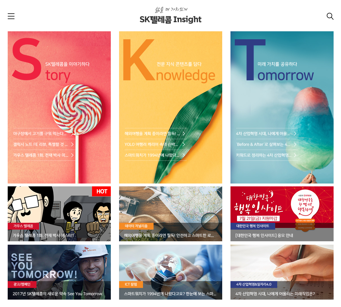 [더피알=강미혜 기자] SK텔레콤이 브랜드 저널리즘에 시동을 걸었다. 온라인 미디어 채널 ‘SK텔레콤 인사이트(Insight)’가 그 시작이다.