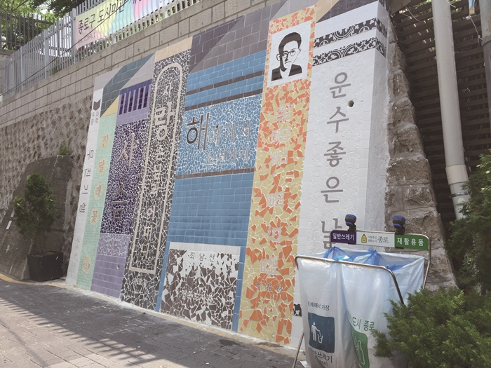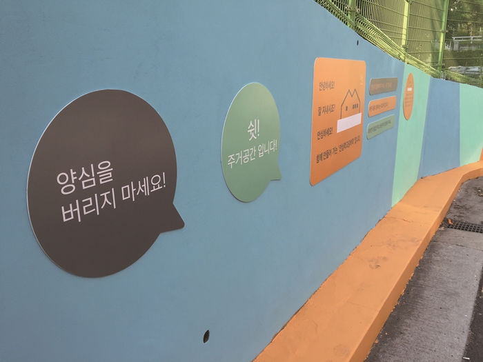 그러고 보면 색색의 꽃이나 해맑게 웃는 아이들이 그려진 벽화들이 대부분이네요.