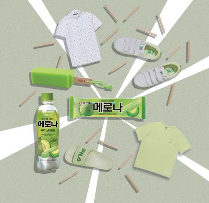 빙그레 메로나는 1992년 출시 이후 딸기, 바나나, 망고 등 다양한 맛으로 변화를 줬다. 최근에는 제주 용암해수로 만든 ‘메로나 제주 스파클링’도 출시했다. 더 나아가 메로나는 패션계에서도 러브콜을 받고 있다. 휠라는 ‘FILA X 메로나 콜라보 컬렉션’을 통해 복고 감성의 헤리티지 무드가 담긴 휠라 디자인에 메로나 특유의 컬러를 적용, 산뜻하고 경쾌한 느낌의 슈즈 콜렉션을 내놓았다.