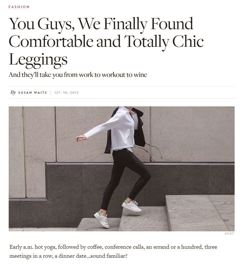 우선 파트너십이다. 어데이는 20대 후반에서 40대 초반 젊은 엄마들에게 인기 있는 라이프스타일 사이트인 ‘퓨어와우’(purewow.com)와 손을 잡았다. 퓨어와우는 “여러분들, 우리 퓨어와우는 마침내 편리하면서도 완전히 세련된 레깅스를 찾았습니다”라는 노골적 홍보기사로 어데이를 띄어줬고, 자사의 사무실에서 어데이 판촉 행사를 열어주기도 했다.