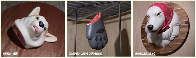 그의 작품은 우리가 익히 알고 있는 앙증맞은 반려동물의 모습과 그 이면에 징그러울 정도로 사실적인 절단면을 동시에 지니고 있다. 제목도 ‘피곤함, 그러나 그대의 기쁨’ ‘나의 발이 그렇게 이쁜가요’ ‘웃어야겠지요’ 등과 같이 시니컬하다.