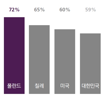 기업들이 고객정보를 수집하는 것에 대해서도 부담감을 나타냈다. ‘기업이 나에 대해 알고 있는 정보 양에 대해 우려된다’는 질문에는 59%가 그렇다고 답했다. 이는 전 세계 평균(40%) 크게 차이나는 수치로, 특히 연령대가 높을수록 우려하는 응답자의 비율이 높아지는 경향을 보였다.