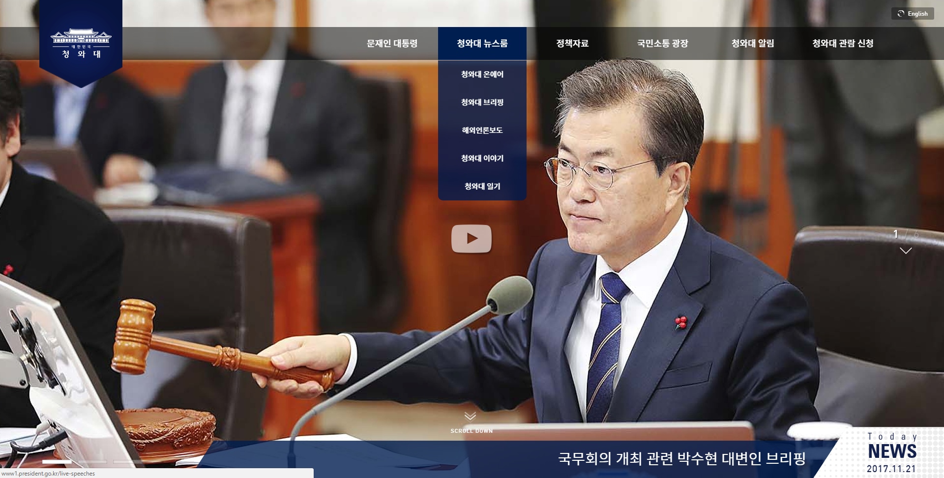 문 대통령 취임 100일을 맞아 새롭게 단장한 청와대 홈페이지 내에 개설된 ‘뉴스룸’ 코너는 달라진 정부 소통의 기조를 상징적으로 보여준다. ▷관련기사 바로가기 그럼에도 론칭 당시 청와대 측은 저널리즘이라는 표현을 사용하는 데 있어선 난색을 표했었다. 이유는 굳이 설명하지 않아도 어렵지 않게 짐작 가능하다.