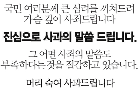 사과광고로 보는 기업의 속내 조선일보 3년치 분석…대형 위기 중심, 메시지·주체 두루뭉술 多 기사입력 2017.11.27 10:17 최종수정 2018.02.05 11:56 기자명 박형재 기자 본문 글씨 줄이기 본문 글씨 키우기 다른 공유 찾기 바로가기