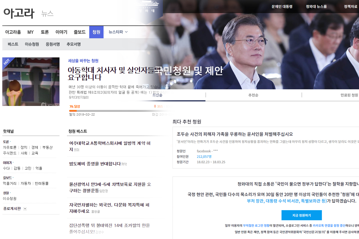 이런 아고라의 한계를 보완한 게 국민청원이다. 문제가 있는 사회 이슈에 대해 실질적인 대책 방안을 책임 있는 정부 관계자에게 직접 들을 수 있기에 다수의 국민 목소리가 집결되는 것이다.
