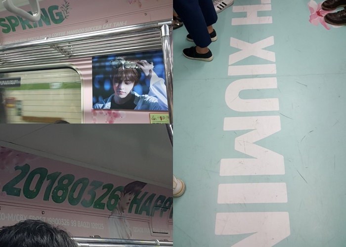 실제 해당 열차 내‧외부는 생일을 축하하는 팬들의 메시지와 시우민의 사진과 어록 등으로 가득차 있다. 바닥에는 ‘6 Years with Xiumin’(시우민과 함께한 6년) ‘So lucky to have Xiu’(시우민이 있어서 참 행운이야) 같은 문구가 적혀있다. 1년 내내 시우민과 함께하고 싶다는 팬들의 애정을 상징하듯 4계절을 형상화한 그림도 그려져 있다.