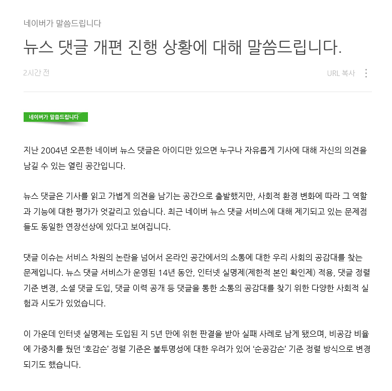 [더피알=문용필 기자] 댓글로 여론 조작을 시도한 이른바 ‘드루킹 사건’으로 포털 서비스 개편 요구가 빗발치는 가운데 국내 포털업계 1인자인 네이버가 논란 이후 처음으로 댓글 개선책을 내놓았다. 아직 뉴스 서비스 정책 변화에 대한 논의는 계속되고 있지만, 악화된 여론에 대응하고자 선제적 조치를 취한 것으로 해석된다.