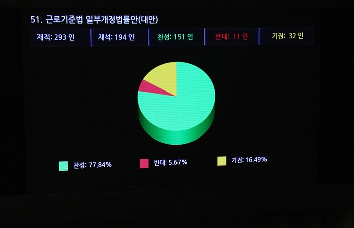 지난 2월 국회를 통과한 근로기준법 일부 개정안을 보면 지금까지는 40시간의 정규 근로시간에 12시간의 연장근로, 여기에 16시간의 휴일근로를 더해 최대 68시간까지 가능했지만 새 법이 적용되면 주당 근로시간이 52시간을 넘지 못하게 된다.
