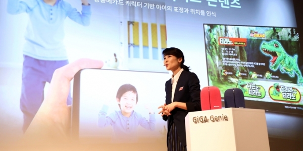 먼저 무대에 오른 김 단장은 어린이에 특화된 AI 서비스를 차별점으로 내세웠다. 지난 3일 대교와 함께 선보인 국내 최초 AI동화서비스 ‘소리동화’가 바로 그것. 부모가 아이에게 동화책을 읽어주면 기가지니가 효과음을 더해주는 방식이다.