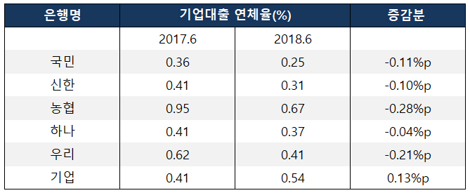 주요 은행 기업대출 연체율