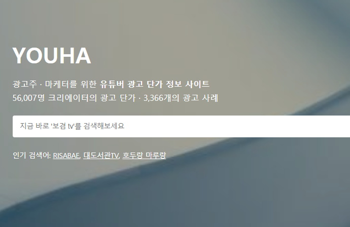 티켓플레이스가 운영하는 유하(YOUHA)에서는 검색창에 크리에이터 이름을 넣으면 예상 광고 단가와 예상 광고 효과, 대표 광고 사례 등이 나온다.