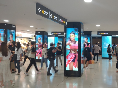 강남역 역사 내 광고는 대부분 전통적 광고판보다는 디스플레이가 자리하고 있다. 수많은 기둥의 4면에 설치된 화면에 광고들이 나타났다 사라지기를 반복한다. 화면별로 각기 다른 광고가 보인다면 산만하겠지만, 일괄적으로 광고가 집행됨에 따라 오히려 주목도가 꽤 높다.