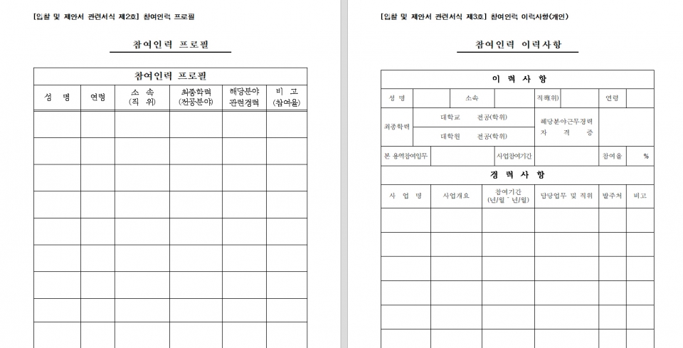 서류 제출 과정에서 업무 전문성을 ‘스펙’으로 판단하는 관행도 개선돼야 할 점이다. 부처·기관을 불문하고 공공 입찰 및 제안 관련 서식을 보면 대부분 참여 인력의 프로필을 디테일하게 요구하고 있다. 연령은 물론 최종학력과 전공을 기재하는 게 기본이고, 지도교수 및 전문가 추천 등을 쓰는 란도 있다.