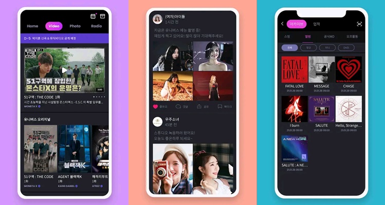 ‘유니버스’는 네이버 ‘브이라이브(VLIVE)’, 하이브(옛 빅히트엔터테인먼트) ‘위버스(Weverse)’처럼 K팝 팬덤의 다양한 활동을 모바일로 할 수 있게 해주는 플랫폼이다. 여느 플랫폼처럼 팬과 아티스트가 자유롭게 소통하는 공간과 뮤직비디오, 화보, 라디오, 예능 등 오리지널 독점 콘텐츠를 제공한다. 아티스트 관련 팬아트, 영상 등을 제작해 공유할 수도 있고 스트리밍, 팬미팅, 콘서트 참여 등 온·오프라인의 팬덤 활동을 기록하고 보상 받을 수도 있다.