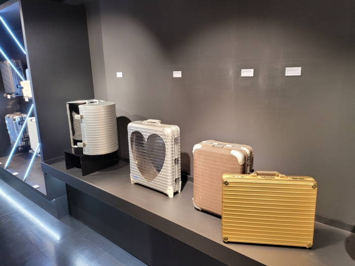 코로나 시국이기에 방역수칙을 철저히 지키며 입장했다. 그리고 마주한 리모와의 역사. 별 차이 없는 가방의 나열이 지겹진 않을까 걱정했는데, 전략적으로 리모와가 생산한 특이한 가방만을 전시해놨다. 팝업 내 직원이 전시품의 의미를 설명하며 이해를 도왔다.