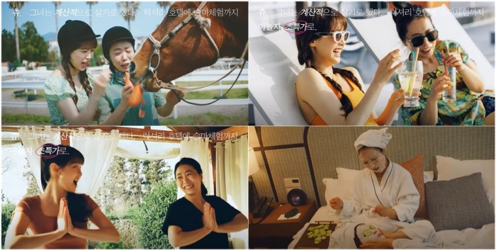 야놀자는 이번 시즌 타깃을 MZ세대로 잡았다. 모델로 "츄"를 기용해 요즘 젊은이들의 여행을 브이로그처럼 광고에 담아냈다. 럭셔리 호텔 오션뷰에 승마 체험을 즐기지만, 바가지는 쓰고 싶지 않은 마음. 부모님과 효도 관광을 하지만 계산은 확실히 한다.