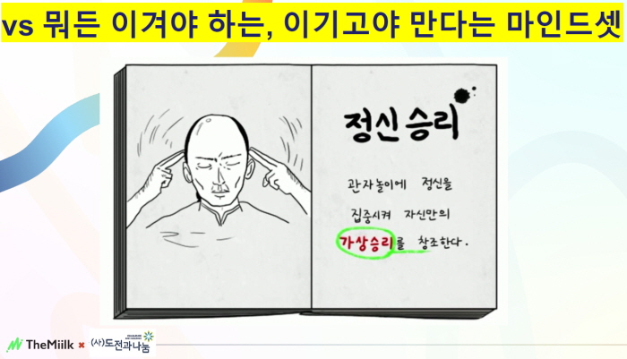 손 대표는 한국뿐만 아니라 중국과 일본을 포함한 동양문화에서 실패를 과하게 두려워하는 문화가 있다며, 그러다보니 정신으로라도 승리해야 된다는 ‘정신승리’를 추구하고 조그마한 성공이라도 성공에 대한 경험을 더 가지려하는 경향이 있다고 설명했다.