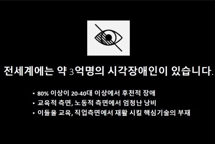 전세계에는 3억명 정도의 시각장애인이 있고, 그중 80%가 사고나 질병 등 후천적 요인에 의해 장애를 입은 사람들이어서 점자 교육 같은 선천적 혹은 유년기부터 장애를 얻은 이들만을 위한 정보 매체의 혜택을 받을 수 없는 실정이었다.