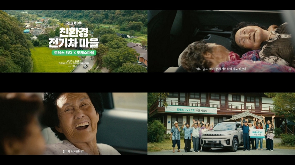 광고 캠페인에서는 '차 이름이 도래수'라며 웃는 어르신들과 토래스EVX를 시승해보는 모습이 담겼다. “영감.나 오늘 저녁 여기서 자고 갈라”, “왜 차 시동을 안 건다냐?” 등 전기차를 처음 만나는 마을 주민분들의 생생한 반응도 웃음을 자아냈다.