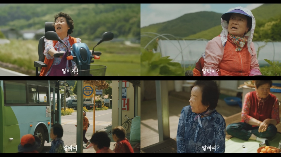 지난 6월 선보인 영상은 ‘알바가 편’과 ‘알바여 편’ 두 편으로 농촌 마을을 배경으로 할머니가 아르바이트 가는 모습을 보여준다. 어디 가냐고 묻는 동네 어르신들이 ‘알바 가’와 ‘알바여’를 '알박아', '알 빠여'로 잘못 알아들으며 벌어지는 해프닝을 코믹하게 그려냈다.