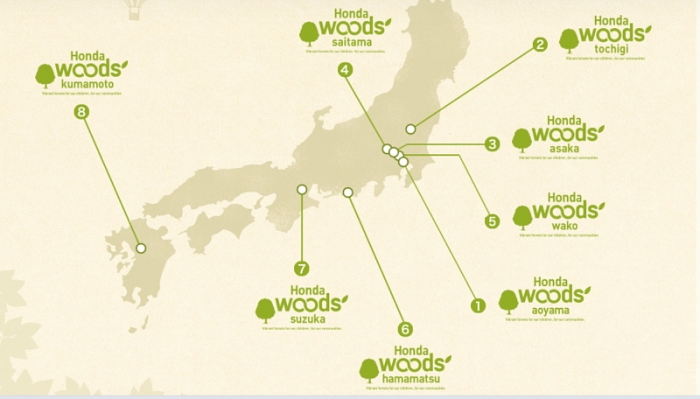 전국 8개 지역, 13개 사업장에 분포되어 있는 ‘혼다 우즈’는 각각 주변 지역의 환경에 맞추어 독자적으로 구성한 숲이다.