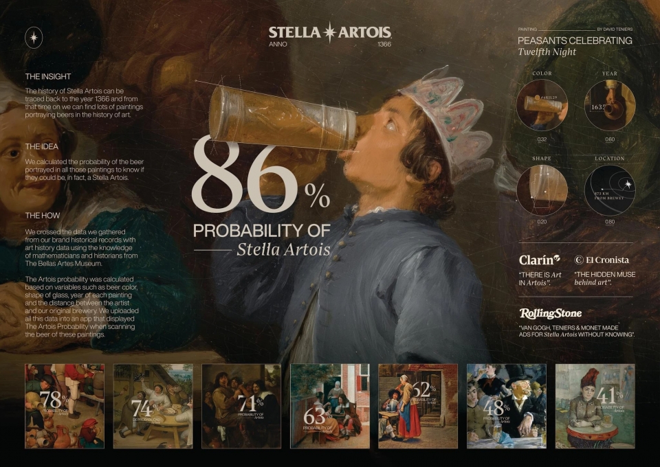 여기에는 인공지능의 역할이 컸다. 그림이 그려진 연도, 작품 속 배경이나 작가 활동의 지리적 위치, 술잔 속에 담긴 맥주의 색을 기본 데이터로 하여 스텔라 아르투아일 가능성을 백분율로 보여주었다.