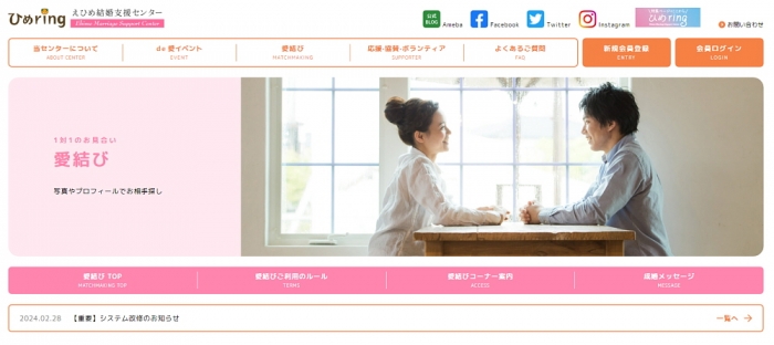 출산율 감소와 인구 고령화를 우려한 에히메현은 2015년 3월 이래 빅데이터를 사용해 사람들을 잠재적인 파트너와 연결해 왔다. 에히메현의 시스템은 결혼지원센터에 등록된 개인 정보와 배우자를 찾는 사람의 인터넷 검색 기록을 바탕으로 파트너를 추천하는 것이다.