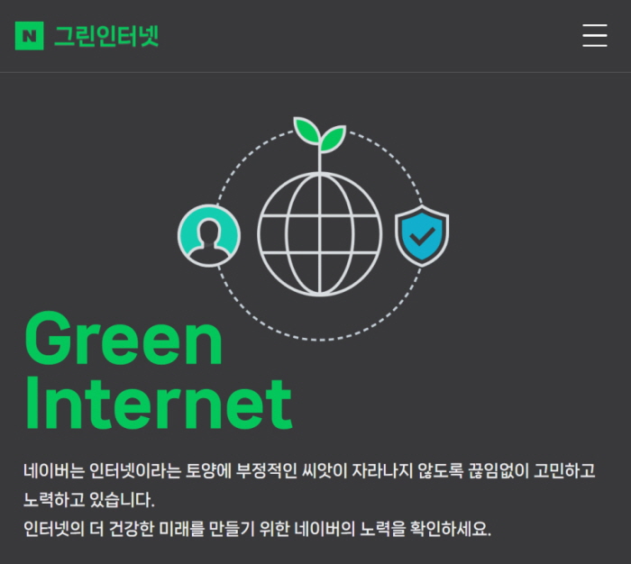 차이가 뭘까 짚어보다가, 네이버가 운영하는 ‘그린인터넷’이라는 특별 페이지를 만났다. ‘건강한 인터넷 환경’을 위한 네이버의 운영정책을 소개하고 신고센터를 안내하는 동시에 운영 결과에 대한 보고서도 공개하고 있는 곳이다.