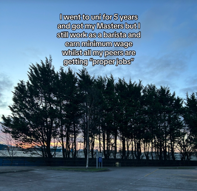#socialmediaisfake 트렌드에 참여한 틱토커 한나(Hannah)는 영상에서 “친구들은 다 제대로 된 직장을 찾았지만, 5년 동안 대학에서 석사 학위까지 취득한 나는 여전히 바리스타로 일하면서 최저 임금을 받는다”고 털어놓았다.