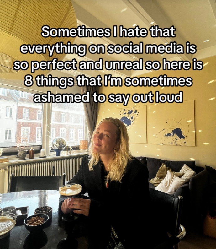 #socialmediaisfake 트렌드의 시작은 26세의 한 덴마크 여성이 지난 3월 “큰 소리로 말하기 부끄러운 8가지”(eight things I am ashamed to say out loud)라고 선언하며 올린 게시물이다.