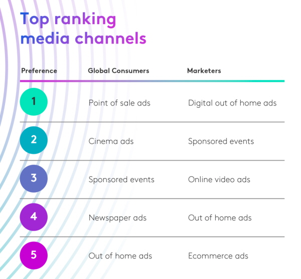 POS(판매 시점) 광고가 소비자들 사이에서 가장 선호되는 미디어 채널로 떠오르며, 이전에 가장 인기가 있었던 스폰서 이벤트를 제치고 1위를 차지한 것도 눈길을 끈다. POS 광고는 소비자들에게 특히 관련성이 높고 유용하며 신뢰할 수 있는 것으로 평가되며, 일반 광고보다 소비자의 관심을 더 많이 사로잡는 것으로 나타났다.
