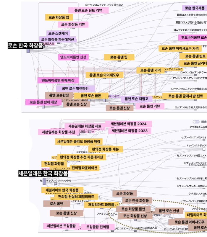 다만 검색 경로를 살펴봤을 때 제품에 대한 인지도는 롬앤 제품보다는 낮은 것으로 보인다. ‘세븐일레븐 한국 화장품’ 검색 이후 경쟁사인 ‘로손 롬앤’으로 이탈해 제품을 검색하는 소비자가 많았다.