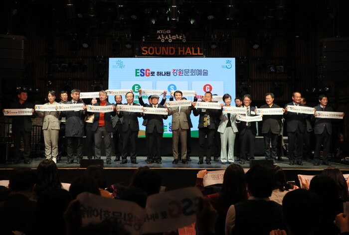 더피알=김경탁 기자 | 강원문화재단은 “민관 공동 환경·사회·지배구조(ESG) 상생협력 선포식을 12일 KT&G상상마당 춘천에서 개최했다”고 밝혔다. 강원문화예술의 지속가능한 발전과 ESG 실천을 위한 행사로, 전국 최초로 민관이 협력하여 진행되었다.