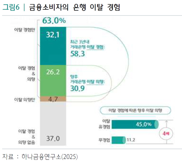 보고서에 따르면 금융소비자의 60%가 최근 3년간 주거래 은행을 조용히 이탈한 경험이 있다.